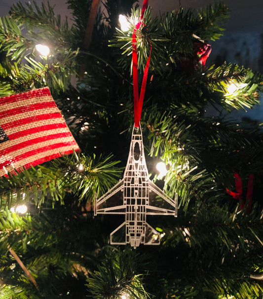 Engraved F-16 Blueprint Fighter Jet Ornament
