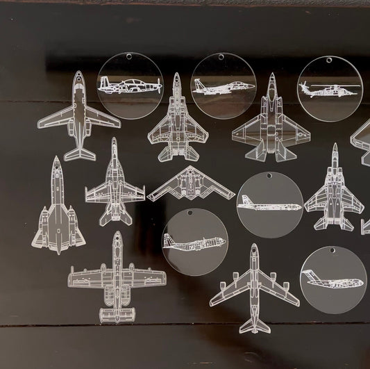 Fighter Jet Wooden Ornaments (F-15, F-16, F-22 & F-35)