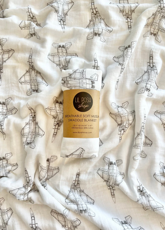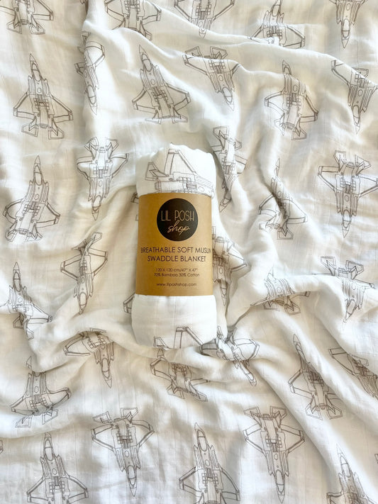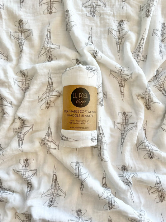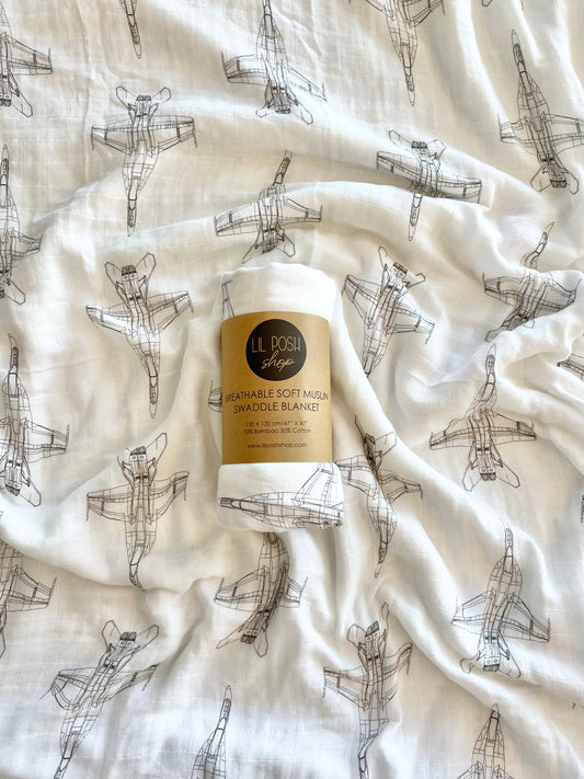 USAF Zoom + Boom Bamboo/Cotton Muslin Swaddle Blanket