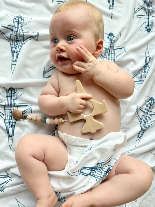 Lil Pilot Pastels MILITARY AIRCRAFT Jersey Knit Swaddles (Choose Your Aircraft) - 42" X 42"
