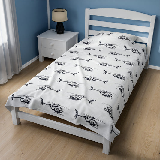 AH-6 Light Attack Helicopter Blueprint Plush Blanket (60" X 80" Twin size)