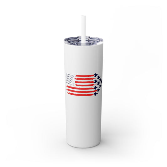 Fighter Jets and Flag (Choose Your Jet) Stainless Steel Skinny Tumbler with Straw, 20oz