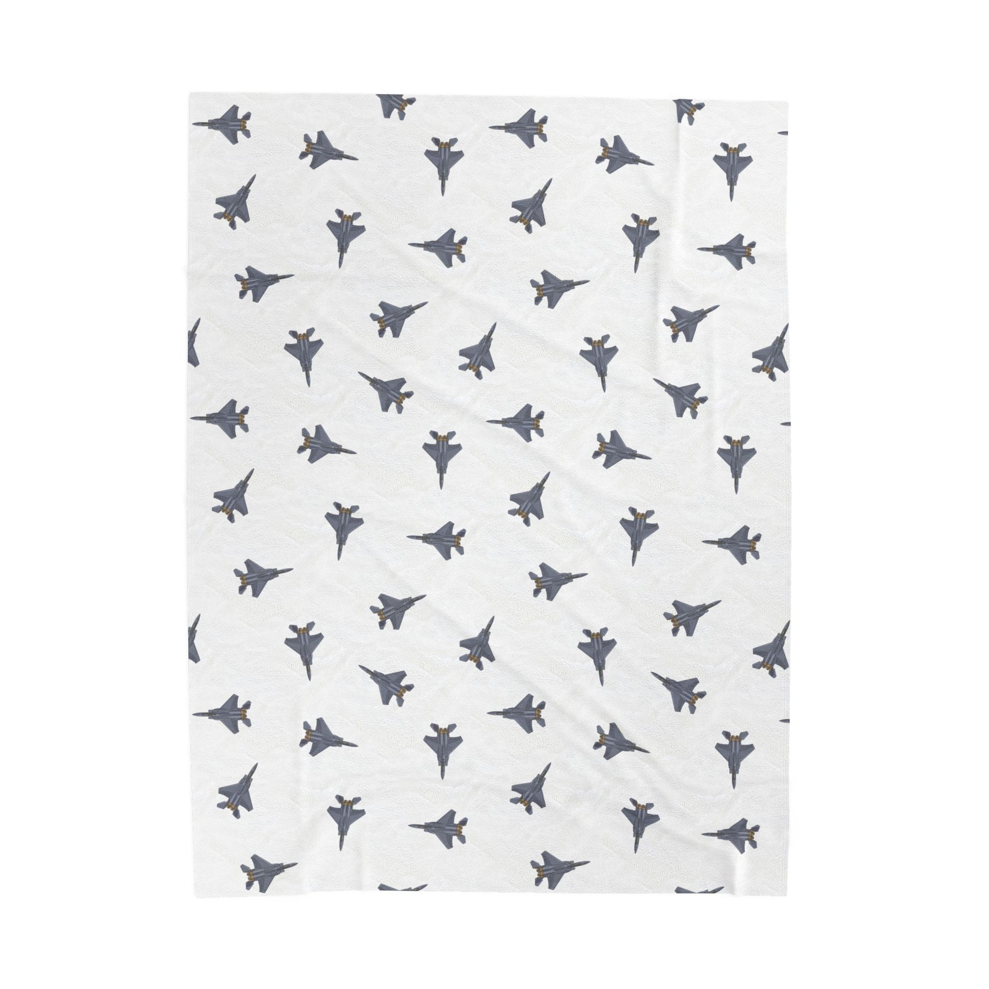 From our Lil Pilots Collection, discover the F-15 fighter jet in a fun and playful pattern on our top-selling plush blankets. Made from lightweight plush fabric, these cozy blankets are perfect for keeping you warm and snug. Complete the look by pairing this blanket with other items from our Lil Pilot Pastels Collection, including jet-shaped pillows, swaddle blankets, changing pad covers, youth shirts, PJ bottoms, and more!