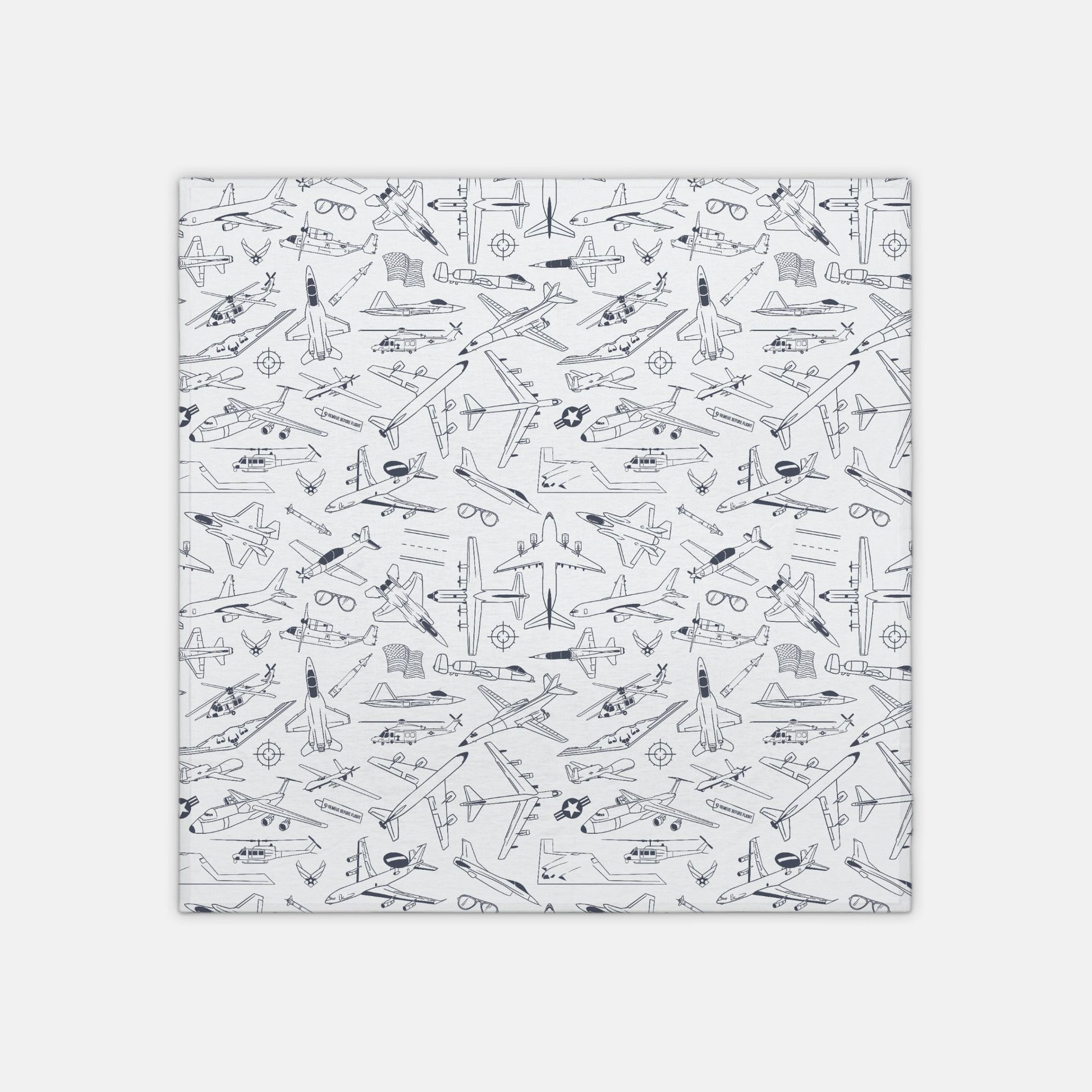 Base Color: White with USAF Zoom + Boom aviation-inspired print in navy